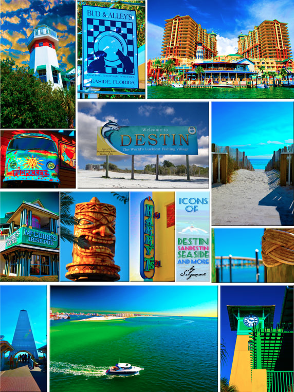 Keep the magic of New Orleans all year long. Get your Destin, Sandestin and Seaside Icons poster by suzanne now. Measures 18x24. This is a great way to have some of the most iconic Emerald Coast locations in one piece. Please email for information regarding frame and mat color choices as well as custom posters.
